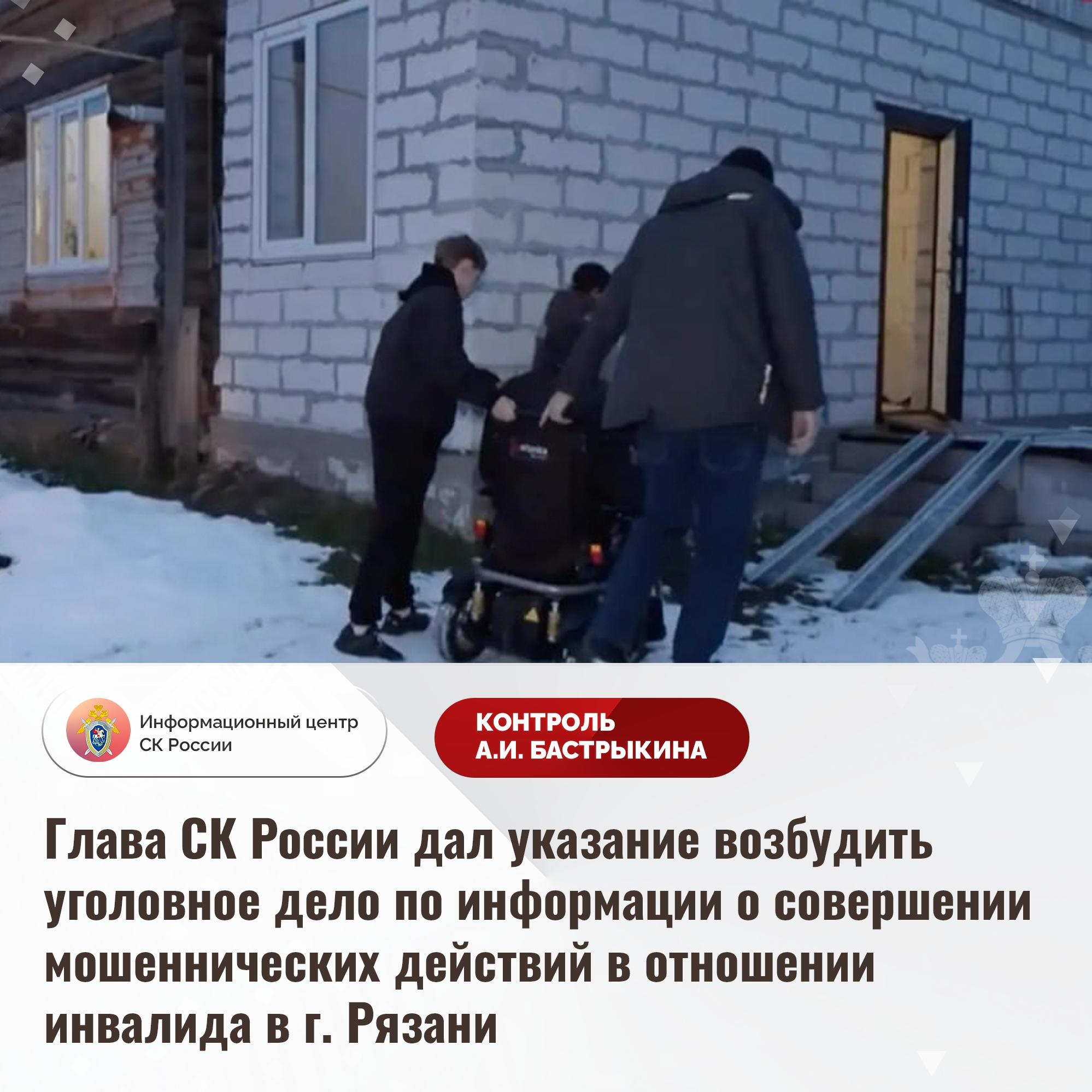 Александр Бастрыкин, председатель Следственного комитета России, распорядился начать уголовное производство по факту мошенничества против жителя Рязани с ограниченными возможностями. Основанием для вмешательства стал репортаж на федеральном телевидении, сообщили в информационном центре СК.
