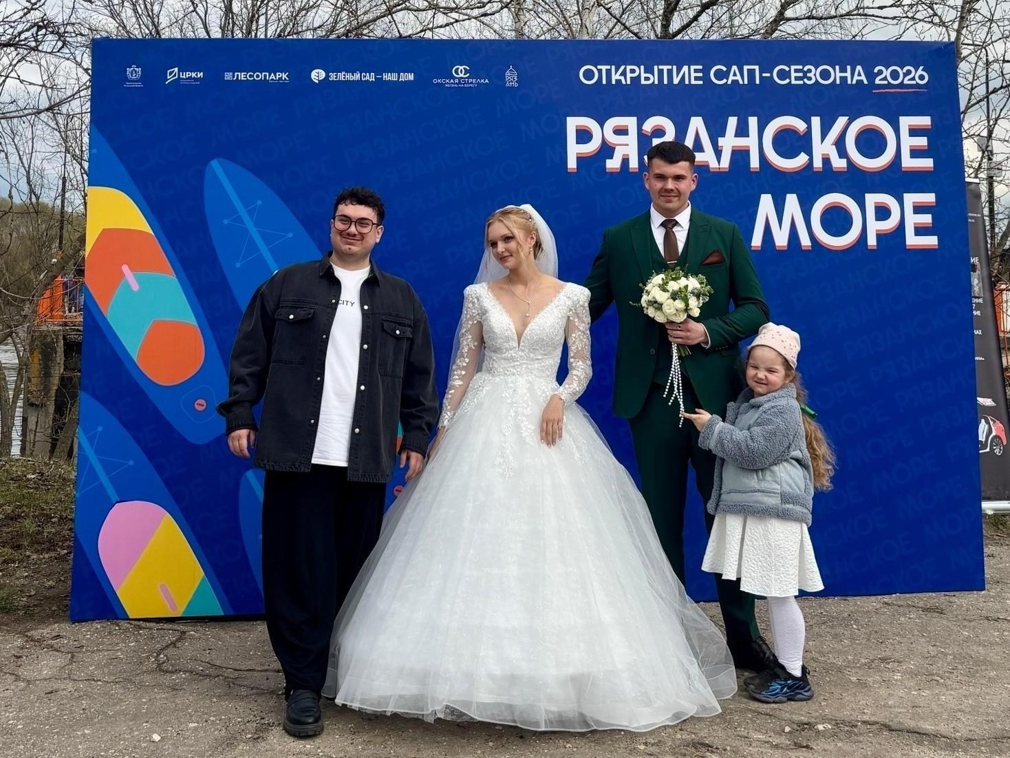 Фестиваль «Рязанское море» в 2023 году перенесли из Лесопарка к Борковскому затону. На этой новой площадке, на пирсе, в выходные и состоялось бракосочетание Андрея и Марии. Пара сознательно отказалась от традиционного ЗАГСа в пользу необычной церемонии на открытом воздухе.